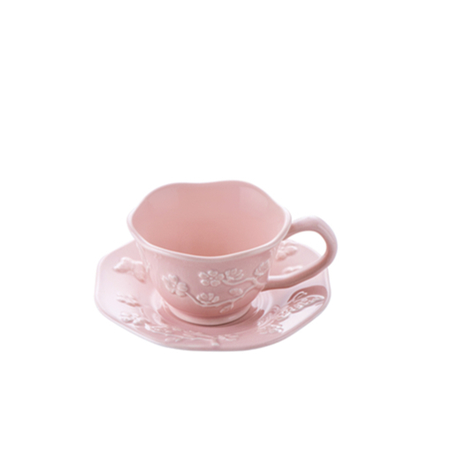 康宁彩瓷茶杯碟-樱花粉