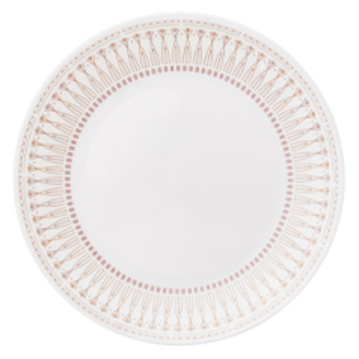 运用几何图形与抽象线条勾勒出的金色年轮花色,低调优雅的香槟金,混合柔情珊瑚红,搭配象牙色的白胚,更显时尚雅致。