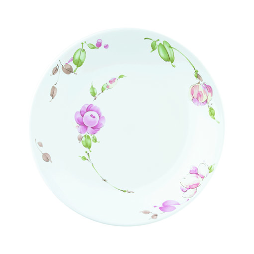 让Corelle田园玫瑰系列在您家扬起一阵怀旧气息。暖人心房的玫瑰应用了柔和的水彩色调,将浪漫和甜蜜瞬间带入您的全程佳肴之旅。 玫瑰花色应用嫩粉和水绿的基调,将美味的香气融于愉悦的一餐中。此系列餐具适于家庭聚会,周末聚餐和您的日常用餐。