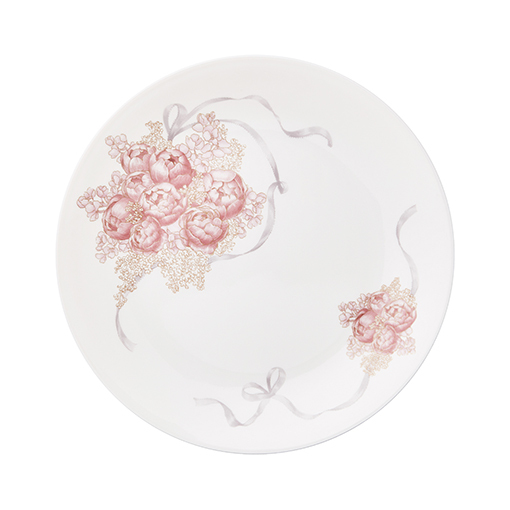 牡丹为花中贵品,国色天香的牡丹系以银色丝带,在盘中绽放,更添高雅华贵,一束幸福捧花,同时寓意花好月圆,承载着满满的祝福,幸福之情,溢于餐盘。