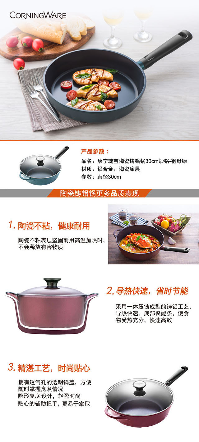 康宁瑰宝陶瓷铸铝锅30cm炒锅-祖母绿