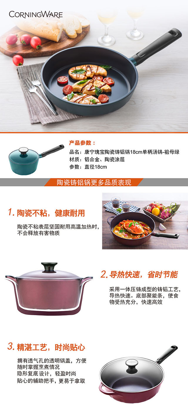 康宁瑰宝陶瓷铸铝锅18cm单柄汤锅-祖母绿