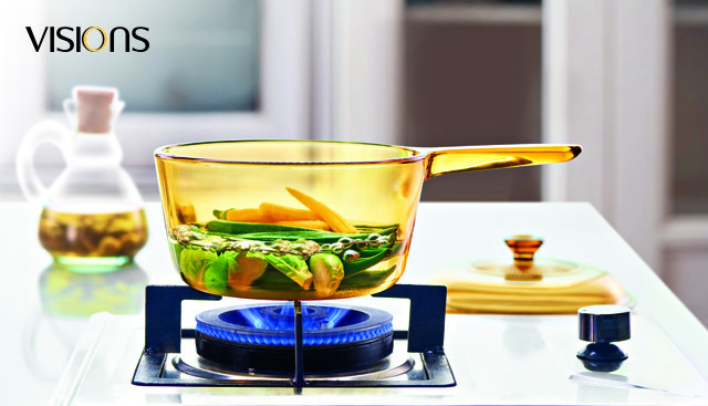 1983年在此基础上康宁餐具推出了VISIONS晶彩透明锅。它是由一种耐冷热温差的玻璃陶瓷材质所铸造,不易因热胀冷缩而破裂。而其看得见的烹饪方式,为厨房带来了赏心悦目的视觉享受。